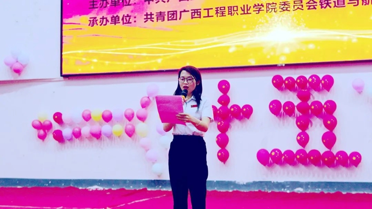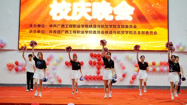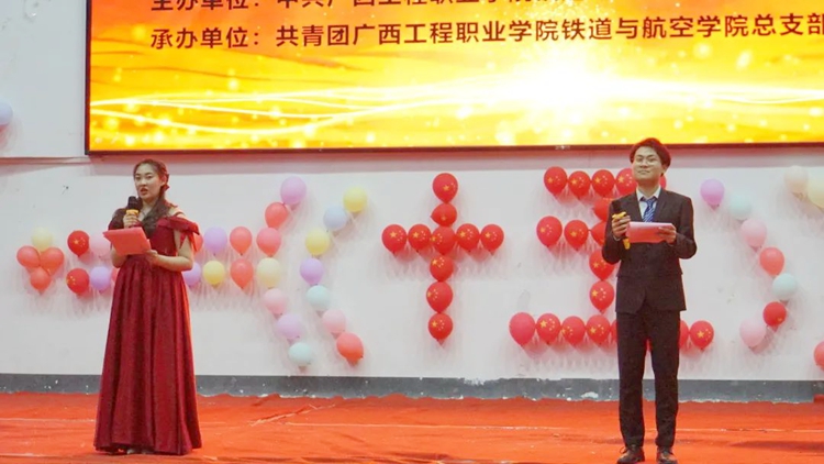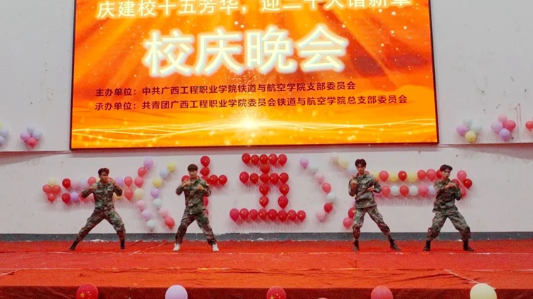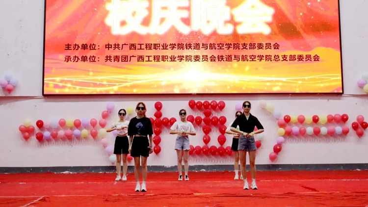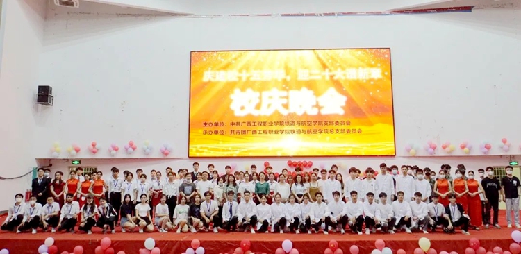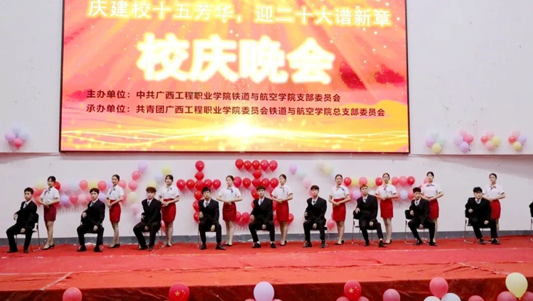 2022年4月14日晚,铁道与航空学院在体育馆举行“庆建校十五芳华,迎二十大谱新章”文艺晚会,学校党委副书记黄秋霞、校团委书记梁凤琴,铁道与航空学院党支部书记、院长覃凤姣,铁道与航空学院党支部组织委员谢锡洁、分团委书记谢小玲、办公室主任黄晶晶,汽车与机电学院分团委书记杨小樱、土木工程学院分团委书记陈春任出席晚会,各学生会和社团代表参加了此次晚会。
