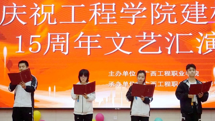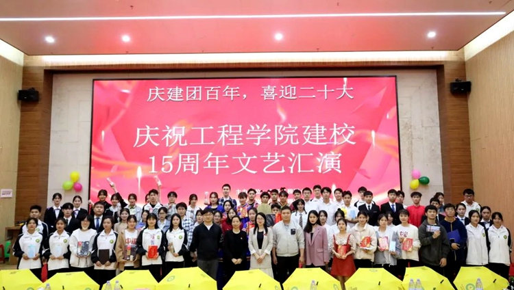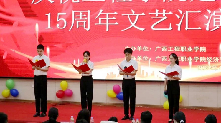 经济管理学院院长庞英连宣布晚会开始后,精彩的节目逐一上演,同学们以深情的朗诵、优美的舞蹈,动听的歌声庆祝beat365唯一官网建校十五周年,喜迎二十大,献礼建团一百周年。
