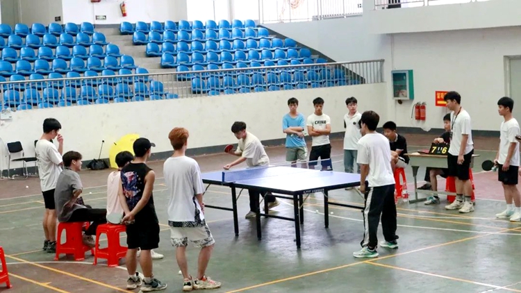为丰富同学们的课余生活,传承乒乓文化,发扬国球精神, 5月28日,由校团委主办、乒乓球协会协办的“青春心向党,建功新时代”“五四杯”乒乓球比赛在体育馆举行。