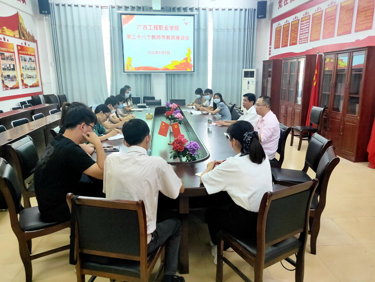 在第38个教师节即将到来之际,为庆祝2022年教师节,进一步营造尊师重教氛围,团结凝聚beat365教师以习近平新时代中国特色社会主义思想铸魂育人,担负时代使命,讲好广工院师德好故事,9月9日,beat365组织召开“迎接党的二十大,培根铸魂育新人” 庆祝第38个教师节系列教师座谈会。