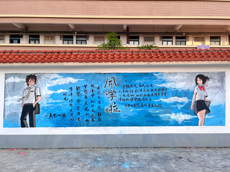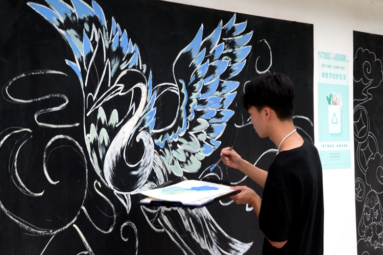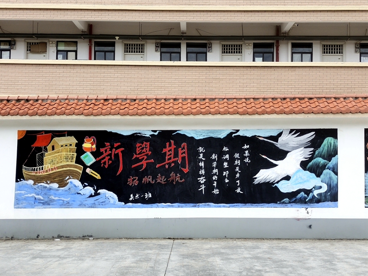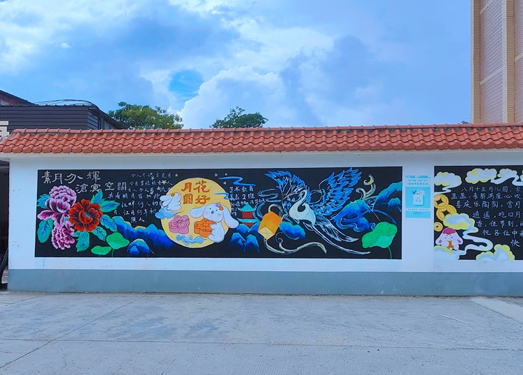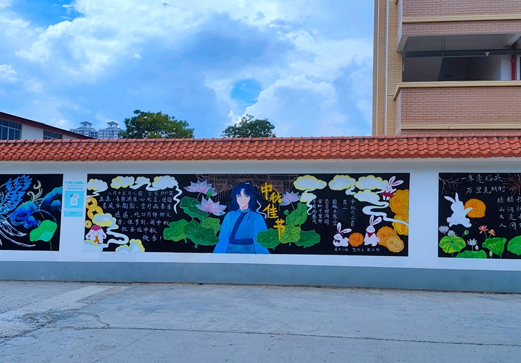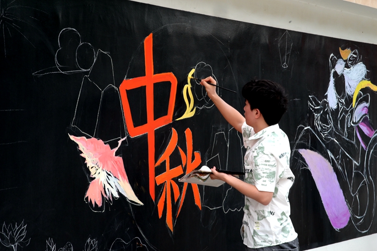 活动中,各班级的同学们充分发挥自己的想象力和团结合作的精神,把对中秋的节日祝福和对新生、新学期的美好祝愿,用一笔一划勾勒在黑板上。