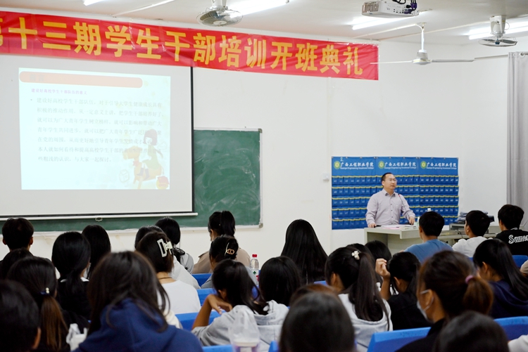 10月21日,第十三期学生干部培训班开班仪式顺利举行。学校纪委书记、副校长彭高彬,学校党委委员、经济管理学院党支部书记、院长庞英连,经济管理学院党支部副书记廖娇、办公室主任雷红、分团委书记李东英等出席开班仪式。谢彩英、陈桃、付艳春、韦继样、叶文思等老师以及经济管理学院全体干部参加开班仪式。仪式由黄世云同学主持。