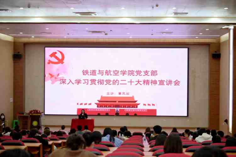 2022年11月24日下午,beat365唯一官网铁道与航空学院党支部在图文信息大楼一楼学术报告厅召开深入学习宣传贯彻党的二十大精神宣讲会,把学院党员干部师生的思想和行动统一到党的二十大精神上来,把智慧和力量凝聚到落实党的二十大确定的各项任务上来,为学校的建设发展凝心铸魂砥砺奋进。