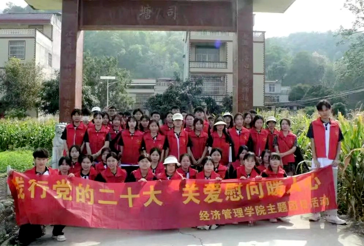 为进一步弘扬中华民族尊老敬老的传统美德,倡导敬老、爱老、助老的新风尚,让党的二十大精神深入农村,打通为民服务“最后一米”,2023年6月10日上午8点,经济管理学院志愿者服务队到平果市塘司屯开展“践行党的二十大 关爱慰问暖人心”主题团日活动,挨家挨户走访老人,开展志愿服务活动,在乡村振兴中续写青春之歌。
