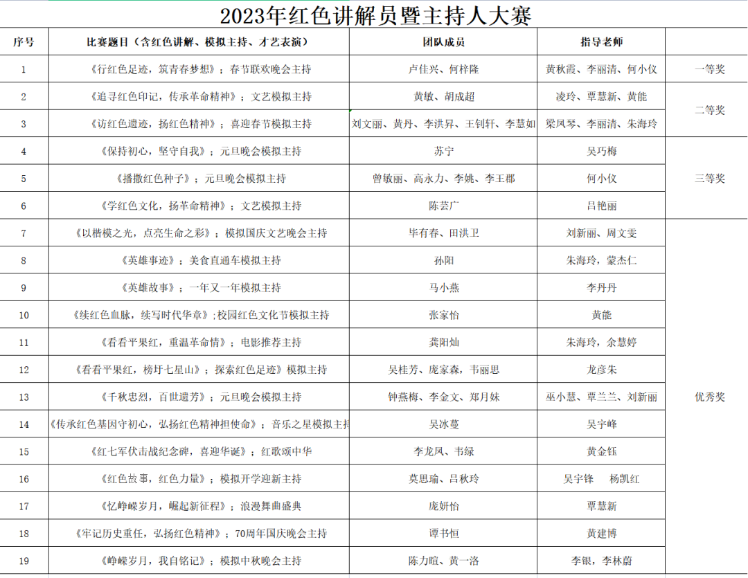 15 吕秋玲、莫思瑜 红色故事讲解题目:《红色故事,红色力量》 主持内容:模拟开学迎新主持
