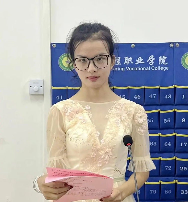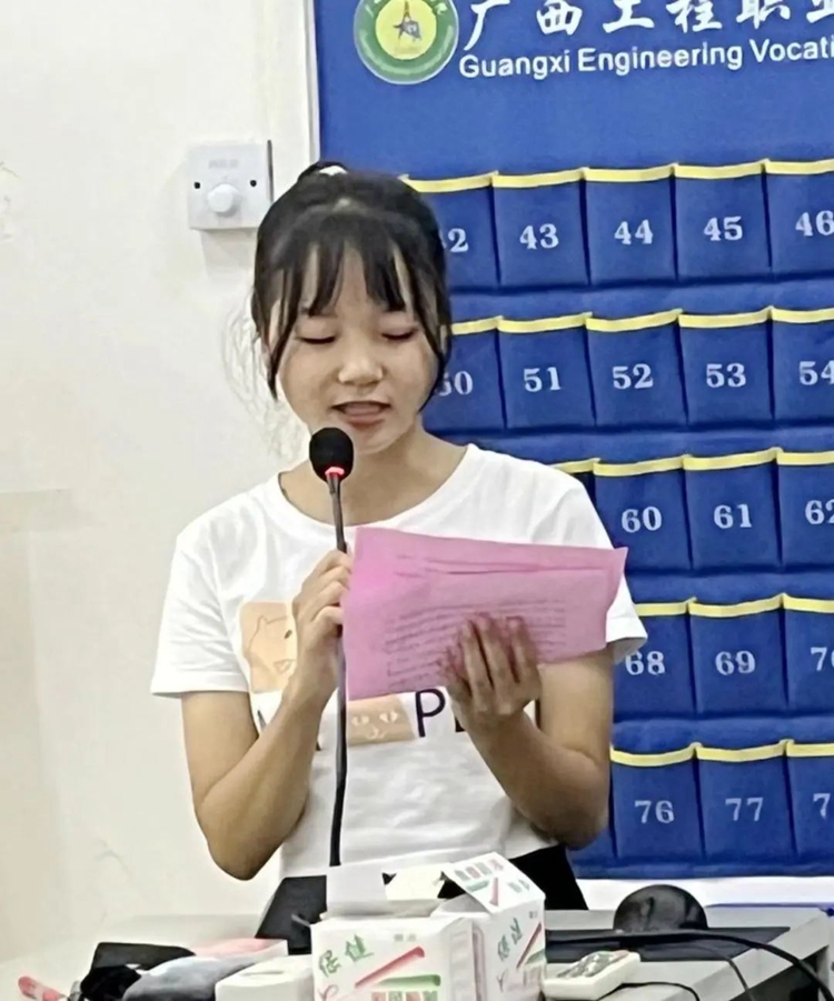 学生干部优秀代表谢珍珍同学上台发言