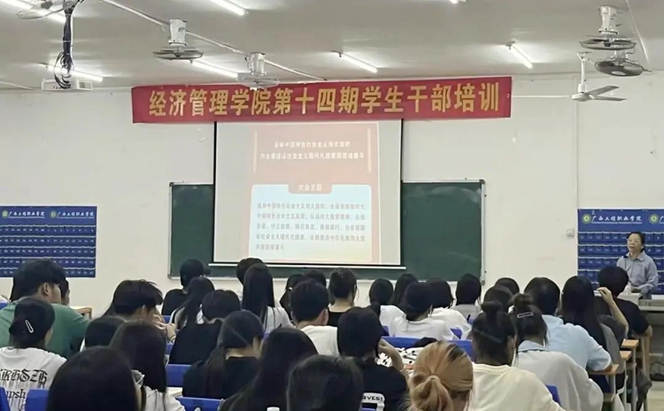 为深入学习贯彻习近平新时代中国特色社会主义思想和党的二十大精神,扎实推进 “青年大学习”行动,引领广大学生骨干自觉用马克思主义中国化最新成果武装头脑、指导实践,不断提高经济管理学院学生骨干的思想政治素质、政策理论水平、创新能力、实践能力和组织协调能力,引导学生干部学习和掌握工作方法与技巧,培养学生干部良好的工作作风和服务意识,2023年10月21日-10月24日,经济管理学院在实训大楼102教室进行第十四期学生干部培训。