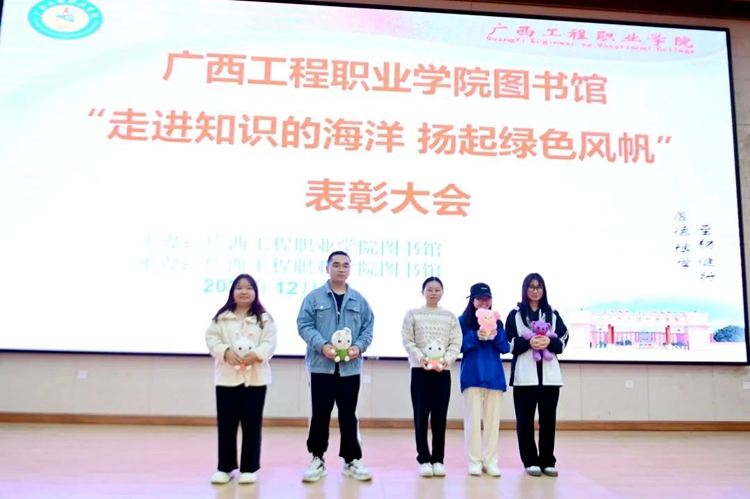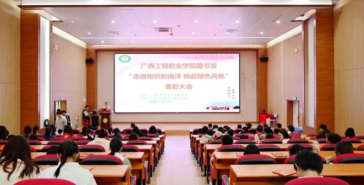 为了营造舒适整洁的阅读环境,创造积极向上的学习氛围,弘扬“奉献、友爱、互助、进步”的服务精神,增强同学们的奉献意识与社会责任感,12月7日下午,学校图书馆在图文信息大楼学术报告厅举行“走进知识的海洋 扬起绿色风帆”表彰大会,表彰积极参与图书馆服务工作并表现优秀的先进个人。学校图书馆馆长张清泉、图书馆韦连飞老师、农山老师及受表彰的先进个人和学生代表参加表彰大会。大会由图书馆农山老师主持。