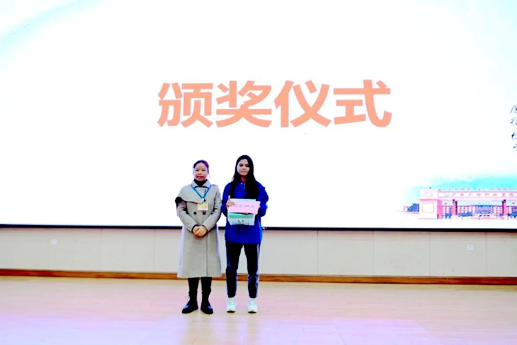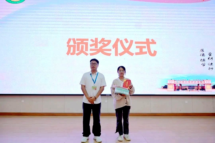 农山老师为获得二等奖的谭玉梅同学颁奖