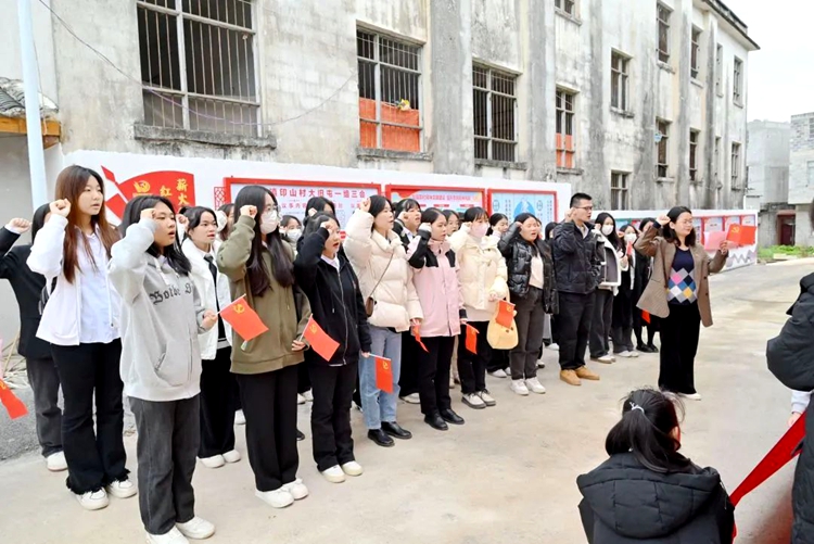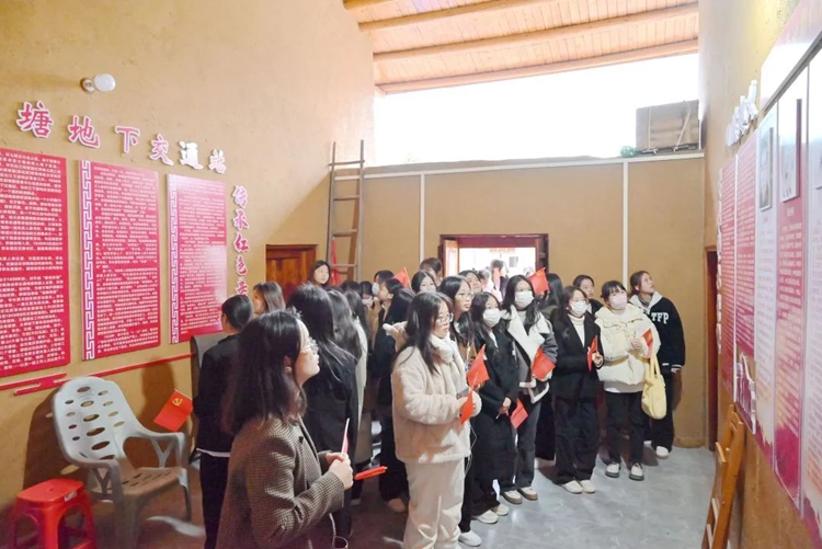 活动第一站,参观四塘镇地下交通站旧址。在解说员指引和解说下,师生党员们学习了四塘镇地下交通站的历史,了解了革命先辈在大旧屯地下交通站领导地下革命工作的英雄故事,真切感受到革命先辈在艰难环境下不忘初心、艰苦奋斗的革命精神。在教育学院党支部书记、院长梁凤琴的带领下,全体党员重温入党誓词。