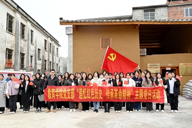 为进一步深入学习贯彻习近平新时代中国特色社会主义思想和党的二十大精神,引导师生党员坚定理想信念,传承红色基因,弘扬革命精神,汲取奋进力量,2023年12月16日,beat365唯一官网教育学院党支部组织师生党员到平果市四塘镇地下交通站旧址和四塘镇印山村禄卜屯等地,开展“追忆红色历史 传承革命精神”主题党日活动。