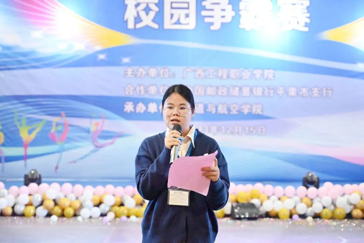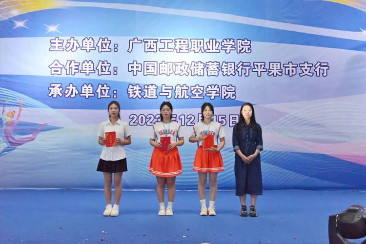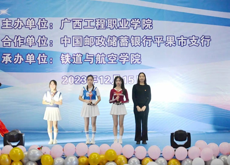 学校纪委书记、副校长彭高彬,中国邮政储蓄银行平果市支行行长罗显勇,中国银行平果市支行行长马忺翊,广西平果顺全隆建材有限公司第二分公司总经理李宇,铁道与航空学院党支部书记、副院长廖娇,铁道与航空学院党支部副书记宋蓉、办公室主任黄晶晶、分团委书记谢小玲,中国邮政储蓄银行平果市支行客户经理吕玲、潘文静等出席比赛现场,学院全体师生到场观看比赛。