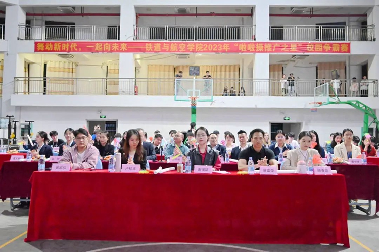 铁道与航空学院党支部书记、副院长廖娇致辞,她表示,啦啦操是一项充满青春气息,集团队协作、奋发向上、自信热情的运动,举办啦啦操比赛不仅可以强健体魄,还可以释放热情、展示活力,希望同学们能够发扬团结合作的精神,互相鼓励、齐心协力,在比赛中赛出风采、赛出成绩,并预祝铁道与航空学院2023年“啦啦操推广之星”校园争霸赛取得圆满成功。