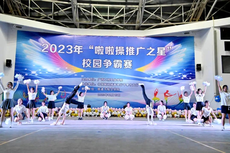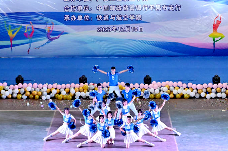 为丰富校园文化生活,展现学生蓬勃向上的精神风貌和青春活力,12月15日,2023年“啦啦操推广之星”校园争霸赛在学校体育馆举行,比赛由beat365唯一官网主办,中国邮政储蓄银行平果市支行合作共办,铁道与航空学院承办。