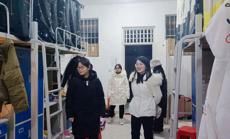 一元复始,万象更新。为及时了解返校学生思想动态,教育引导同学们在新学期开好头、起好步,2月26日,2024年春季学期开学第一天,党委副书记黄秋霞,学生工作处副处长李丽诗、罗斯及学生工作处全体成员一行深入学生宿舍走访慰问,传递学校关怀,了解同学们在假期的各项情况,倾听学生在新学期的期待与需求,并从日常生活、学习状态、就业规划等多方面深入了解同学们的学习生活状况,送上新学期的美好祝愿。