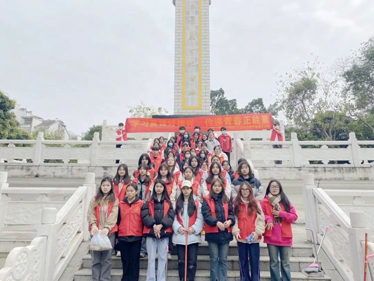 在烈士陵园,同学们认真清洁环境卫生,以实际行动表达对英雄的崇敬和缅怀之情。