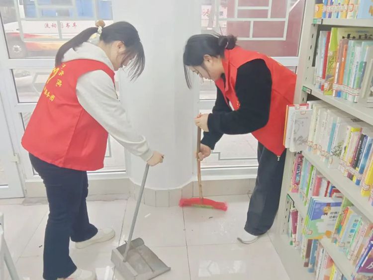 同学们还积极参与平果市图书馆的环境卫生清洁工作,为公共文化场所的环境文化建设贡献一份力量,充分展示了新时代大学生的社会责任感和志愿服务精神。