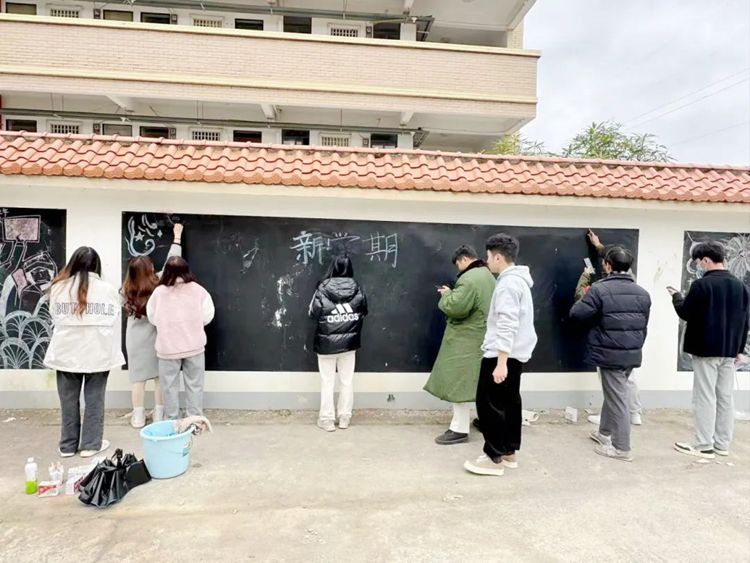 同学们用毛笔小心地勾勒出每一个笔画,将它们汇聚在一起,创造出美丽的图案。