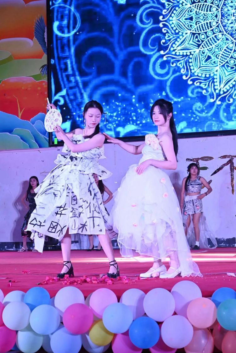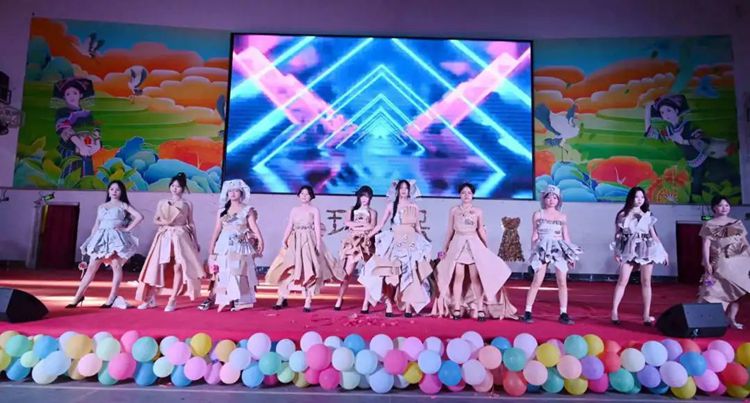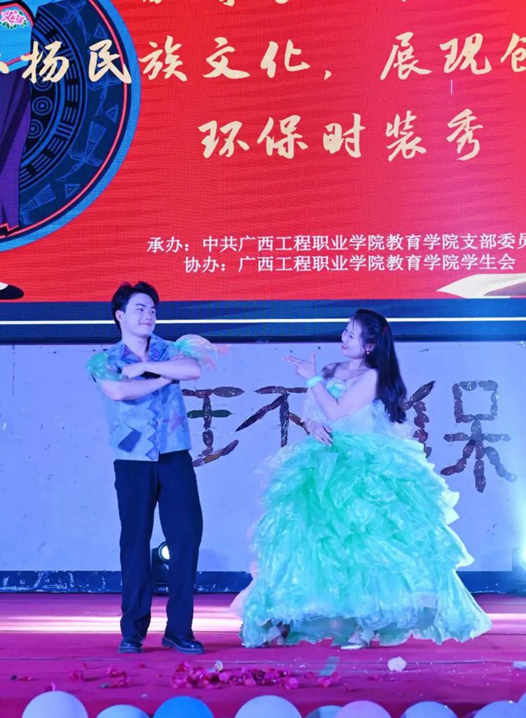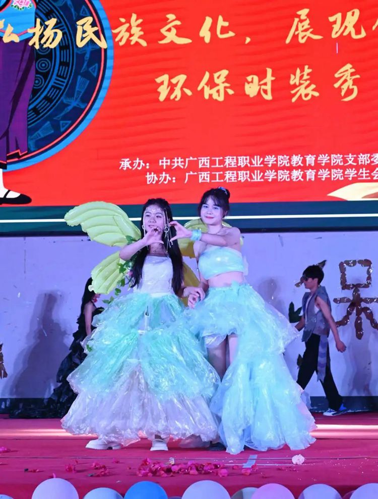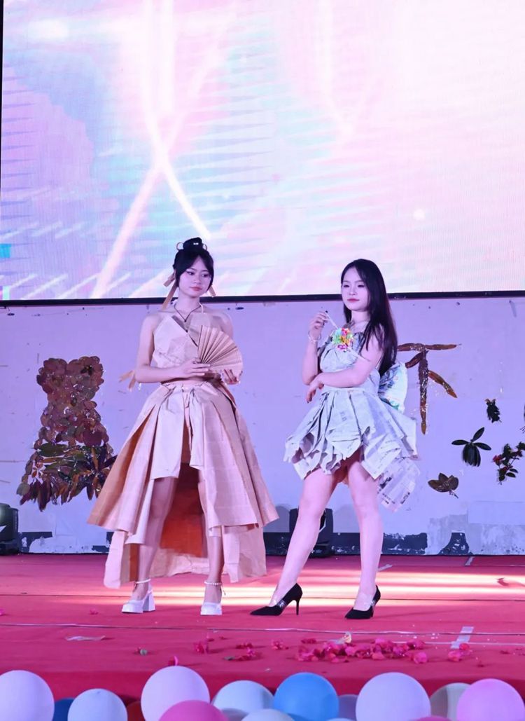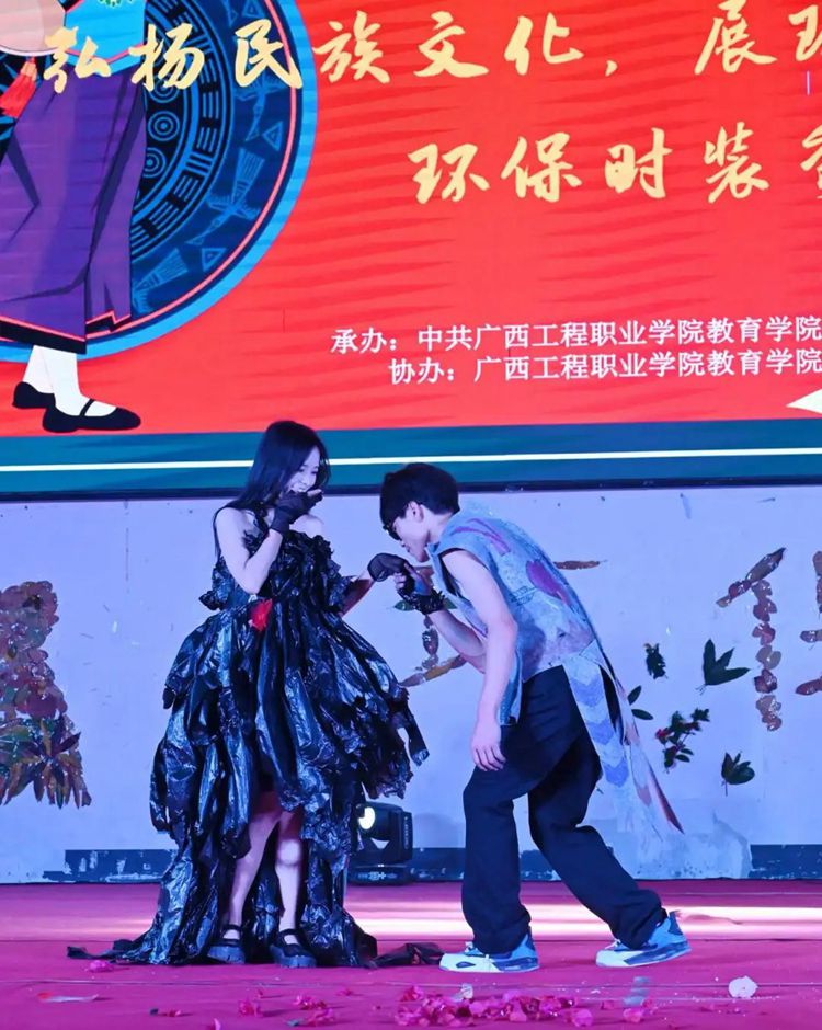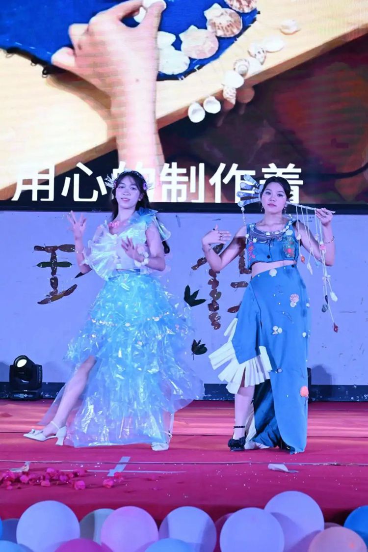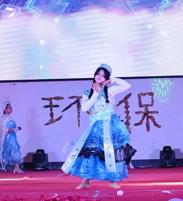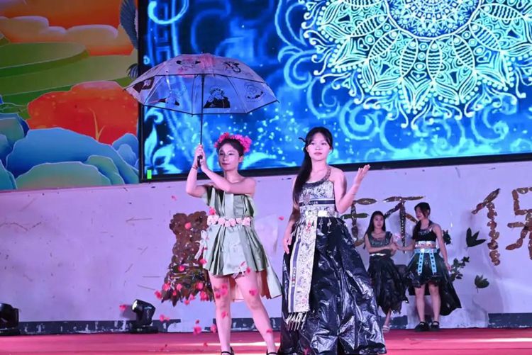 选手们热情高涨,充分发挥想象力和创造力,将塑料袋、废报纸等废弃物转化为时尚的服装作品,并依次进场完成走秀与作品展示。