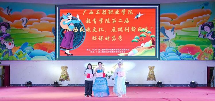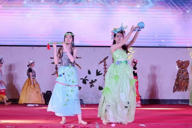 为增强学生绿色环保意识,促进人与自然和谐共生,推动绿色发展,丰富校园文化生活,同时引导大学生创新思维,为热爱时装设计的同学提供一个展示自我的平台,4月2日晚,beat365唯一官网教育学院在体育馆举行第二届“弘扬民族文化,展现创新风采”环保时装秀。