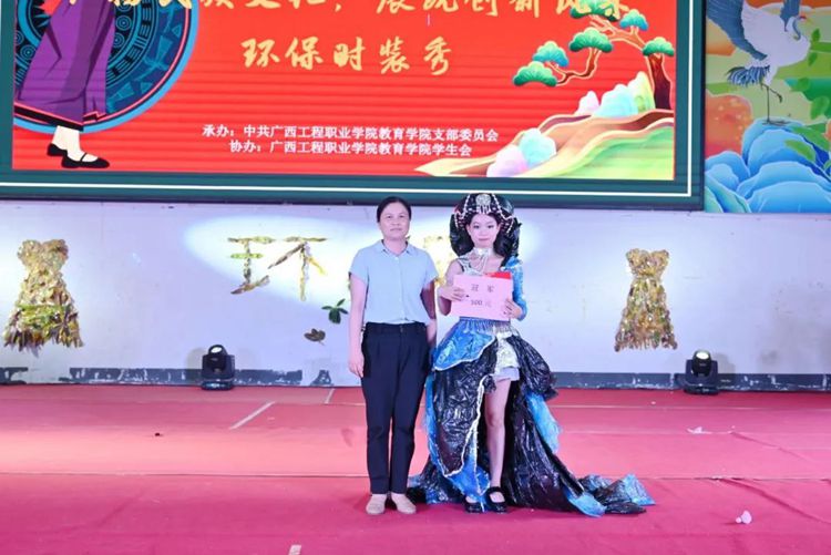 学校副董事长林艳,纪委书记、副校长彭高彬,校长助理梁善雅,教育学院党支部书记、院长梁凤琴等领导干部出席活动现场,教育学院全体教师及各学院学生代表到现场观看环保时装秀。