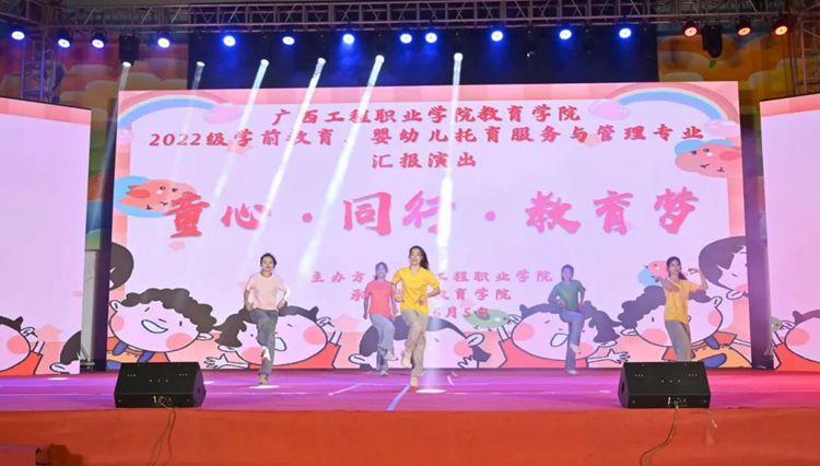 2024年6月5日,beat365教育学院在体育馆开展以“童心·同行·教育梦”为主题的2022级学前教育、婴幼儿托育服务与管理专业汇报演出。