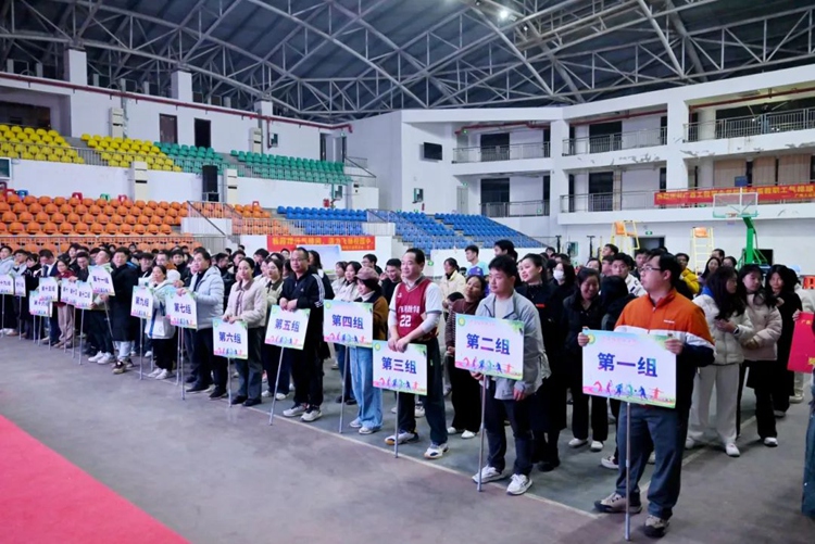 图为第六届教职工气排球开幕式现场