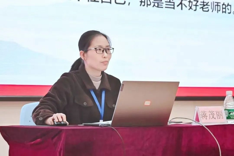 图为副校长蒋茂丽作题为《大力弘扬教育家精神》和