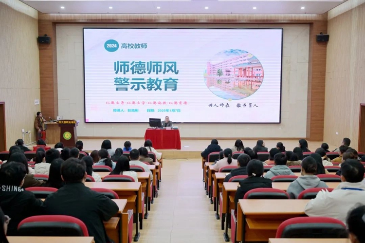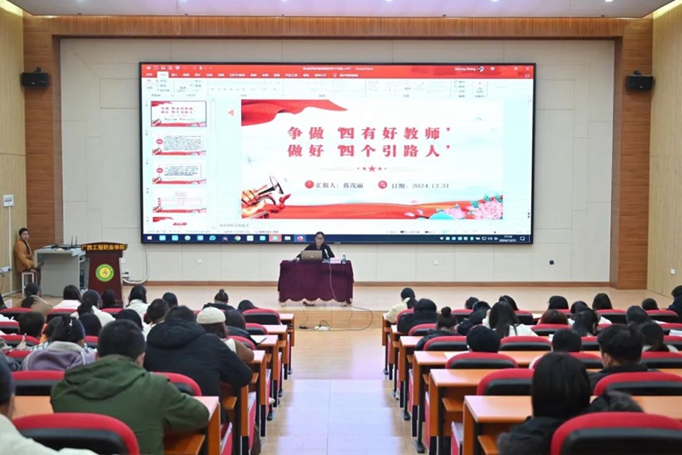 副校长蒋茂丽作题为《大力弘扬教育家精神》和《争做“四有好教师”,做好“四个引路人”》的专题培训。她要求全体教师要深刻把握教育家精神的内涵要义,大力弘扬教育家精神,涵养高尚师德师风,依法履行教师职责,对标新时代高校教师职业行为十项准则,不断充实、提升自己,增强责任意识、服务意识,争做“四有好老师”,做好“四个引路人”,践行“四个相统一”,努力成为“经师”与“人师”相统一的大先生,培养堪当民族复兴重任的时代新人,共同推动学校高质量发展,为强国建设民族复兴伟业作出新的更大贡献。