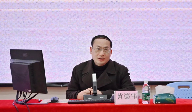 图为副校长黄德伟作题为《做好课堂育德工作,培育德才兼备人才》专题培训