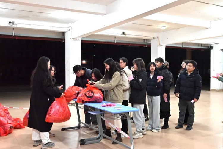 中奖的幸运儿们难掩激动之情,脸上洋溢着灿烂的笑容,纷纷从队伍里快步朝着指定地点走去,欢快领取奖品。