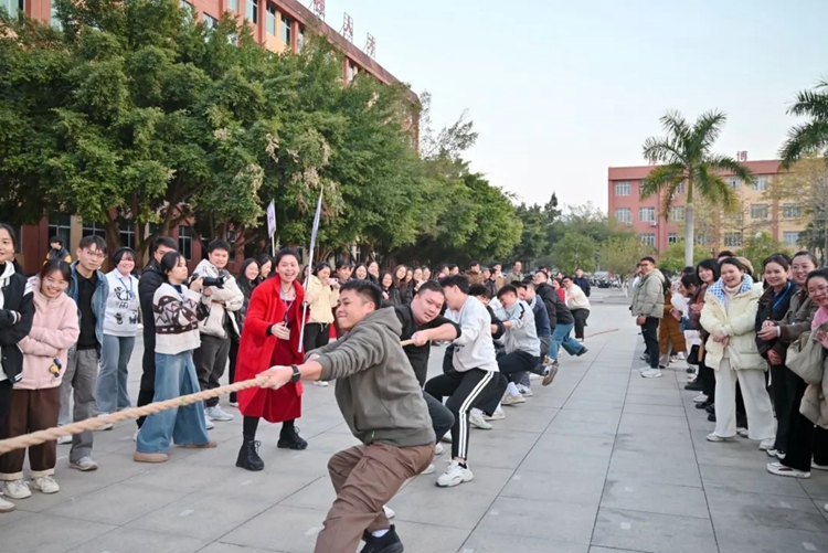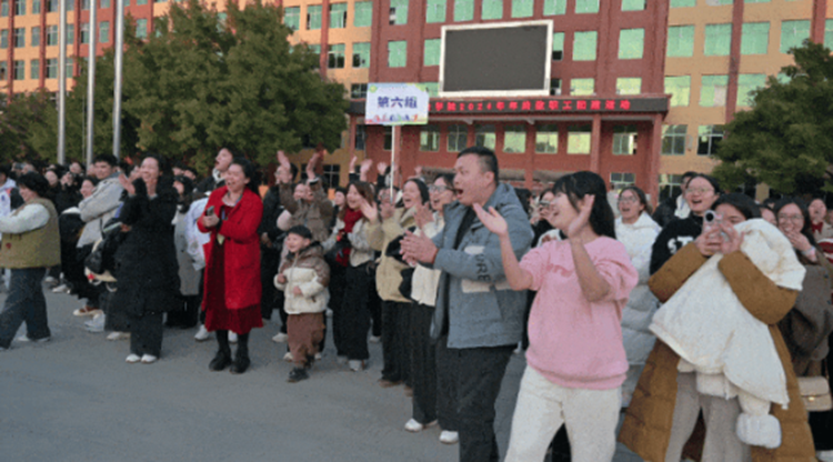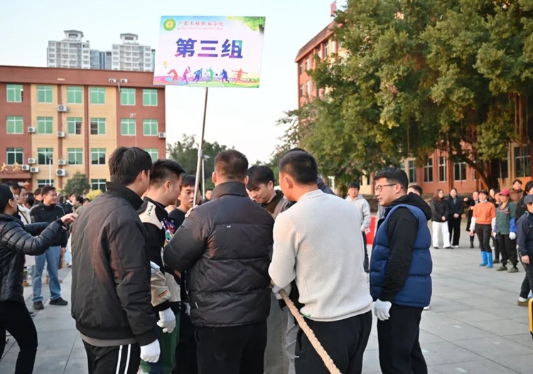 各部门教师组成的啦啦队也毫不逊色,他们整齐地喊着口号,为参赛队伍加油助威。在这场力量与意志的较量中,充分展现了教职工们团结一心坚韧不拔的精神风貌。