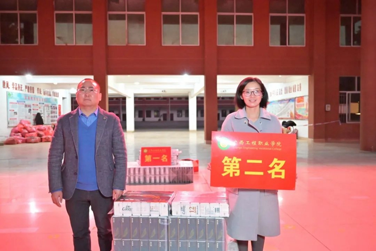 图为纪委书记、副校长彭高彬为第二名颁奖