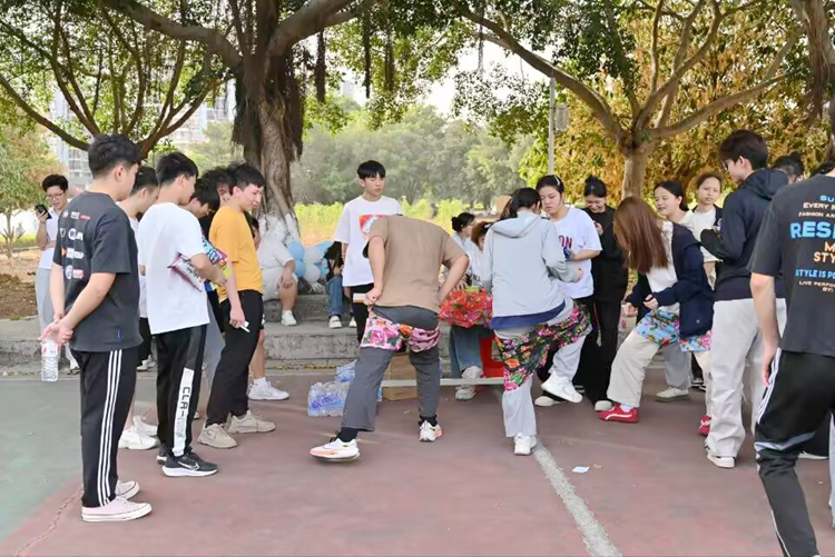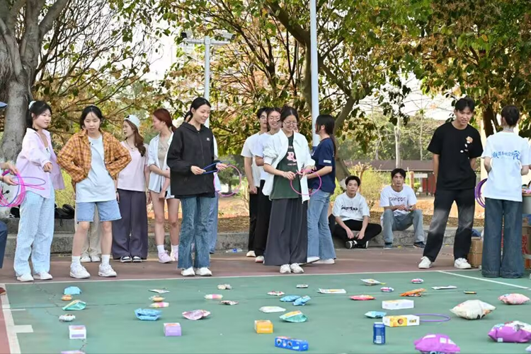 除了激烈的竞技比赛,活动现场还设置了多个趣味小游戏,如套圈活动、蒙眼吃香蕉、徒手穿花裤等。这些小游戏不仅增加了活动的趣味性,也吸引了众多师生的积极参与。在套圈活动中,师生们站在指定线外,对准目标扔出圈圈,套中物体即为成功。蒙眼吃香蕉则考验了两人之间的默契,一人蒙眼,一人指挥,将香蕉喂到同伴口中。徒手穿花裤更是吸引了众多观众的目光,参赛人员在指定区域快速穿上特制花裤,完成规定动作,现场笑声不断。