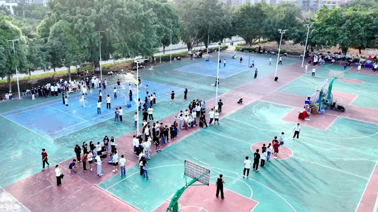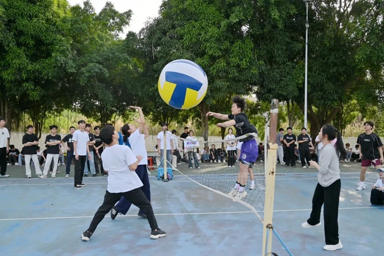 校庆活动以体育竞技为亮点,在运动场上激情绽放。巨型排球赛中,同学们精神抖擞,严阵以待。扣球瞬间,选手们高高跃起,以雷霆之势将球扣杀,每一个动作都凝聚着团队的默契与拼搏,场边的阵阵喝彩是对他们体育精神的最好褒奖。