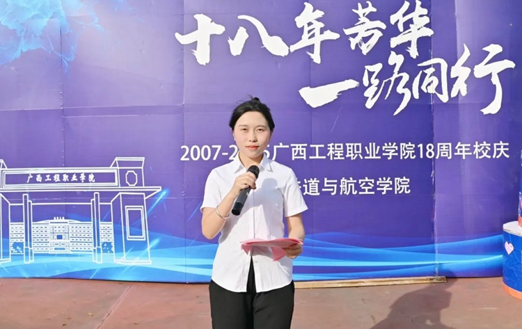 图为铁道与航空学院学生科长、分团委书记谢小玲为获得团结奋进奖的队伍颁奖