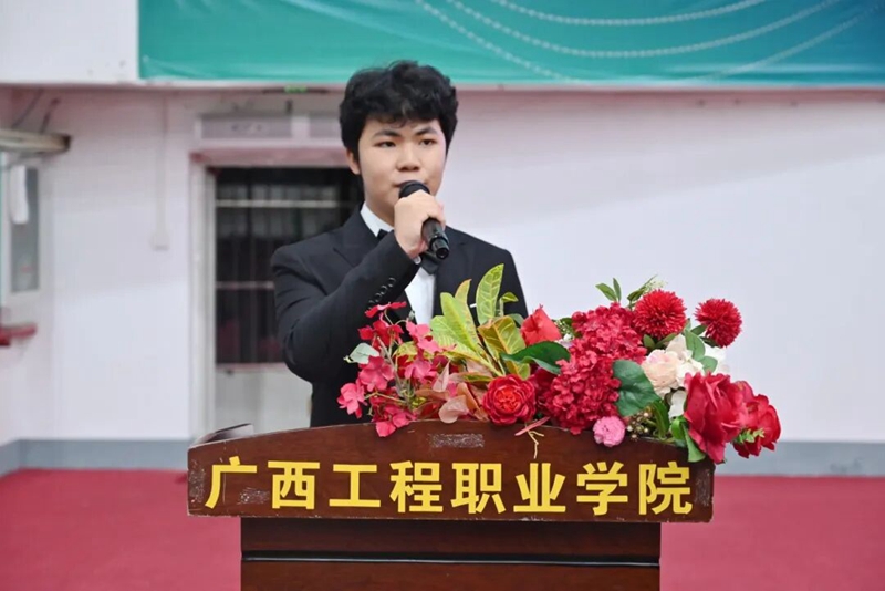 运动员代表黄新雄同学发言,他指出篮球是团队协作、拼搏超越的精神象征,更是新生间联结友谊、证明自我的舞台。全体运动员将秉持“友谊第一,比赛第二”的精神,尊重裁判与对手,以坚韧意志和蓬勃朝气投入赛事,享受运动快乐,书写青春篇章。