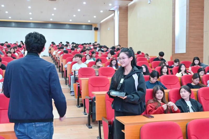 同学们积极参与到讲座的互动之中,回答有关的问题。