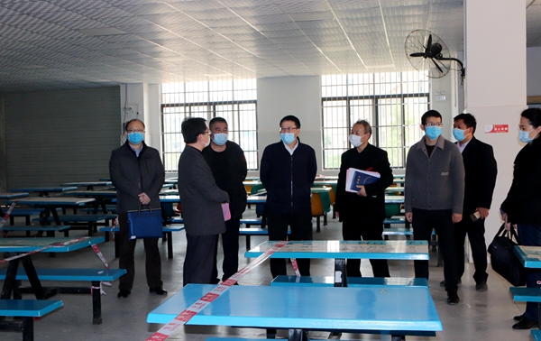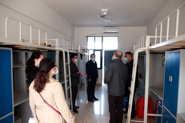 汇报会结束,宾正迎组长一行详细核查了学校2020年春季学期开学准备工作相关台账、资料,并实地参观走访了学校疫情防控物资储备室、学生餐厅、集中医学观察点、学生宿舍、校医室、教学楼等,深入了解学校疫情防控工作各项措施落实情况。