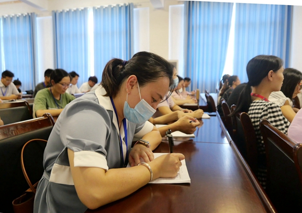 行政人员认真听取报告做学习笔记 在“强化意识,提升能力,争当学校健康发展的实干者和推动者”专题学习中,罗艳妮副校长要求全体行政人员要“强化四个意识,提升四个能力”,做到:强化大局意识,争当“参谋助手”;强化责任担当意识,争当“行家里手”;强化沟通配合,争当“协调高手”;强化创优争先意识,争当“创新能手”。她最后指出,只要全体行政人员坚定目标、脚踏实地,勇挑重担、主动作为,从现在做起,从点滴做起,从岗位工作做起,始终把心思集中在“想干事”上,把能力发挥在“会干事”上,把力量凝聚在“干成事”上,就一定能够在奋力推进学校教育事业发展再上新台阶和实现升本目标的工作业绩和实绩,收获成长、成功。