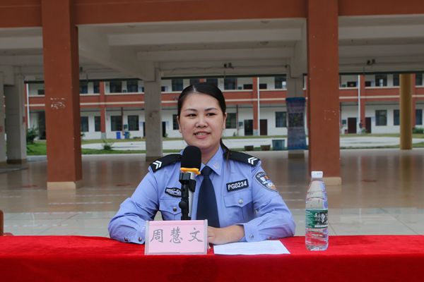 覃所长结合自己多年办案经验及对未成年人犯罪的深入研究,从为什么要加强青少年法制教育、什么是违法犯罪、什么是校园欺凌、怎样提高自我防卫等问题,进行了以案说法的案例分析。在思想上对同学们进行了警示教育,提高了法律意识,更让同学们懂得了法律的严肃、犯罪的可怕。同时,张警官要求同学们不但要学法、懂法,还要学会用法,学会用法律保护自己,通过自身实际行动去践行法律、维护法律的尊严.