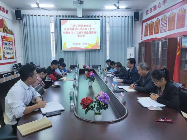 11月12日下午,学校党委在学校图书馆党员活动室召开党委理论学习中心组(扩大)专题学习会,专题《习近平谈治国理政》第三卷。学校党委委员、各党支部书记、支委参加专题学习会,学习会由学校党委书记吕伟斌主持。