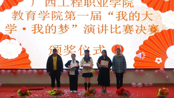 2020年12月23日晚,beat365教育学院第一届“我的大学,我的梦”大学生主题演讲比赛决赛在图文信息大楼报告厅举行。来自各二级学院15名同学参加了本次角逐。教育学院副院长梁善雅出席比赛现场并致辞,黄能、凌玲、卢燕梅、梁玉莹等老师担任比赛评委,来自各学院的师生代表、各学生社团代表等前来观看比赛。