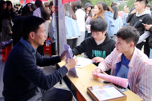 北京中农信达信息技术有限公司、广西平铝集团有限公司、南宁高动企业管理有限公司、广西荣航企业管理集团有限公司、中国核工业二三建设有限公司防城港项目部、广西平果市中兴恒联投资有限公司、凌云县人力资源和社会保障局等180多家企事业单位参加了此次毕业生人才双选会,为毕业生提供了7500多个就业工作岗位。