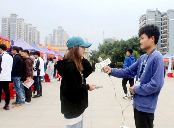 校记者团采访应聘毕业生,学姐表示毕业生在应聘中要自信,多方面展示个人才能,认真把握每次就业机会;