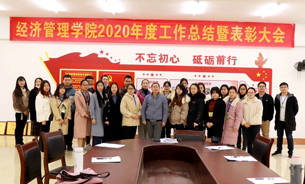 为了总结工作成绩,树立典型,表彰先进,同时部署2021年度工作,经济管理学院于2021年1月21日下午在学院会议室举行2020年度工作总结暨表彰大会。校党委宣传部部长、副校长彭高彬出席大会并讲话。经济管理学院全体教师参加了会议,大会由韦张惠老师主持。