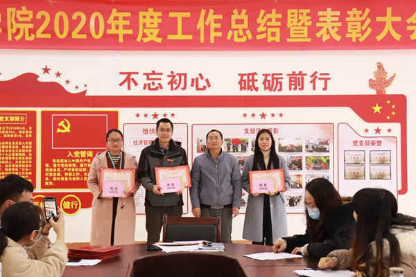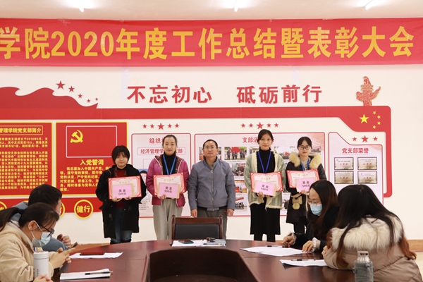 会上,学校副校长彭高彬宣读了经济管理学院对2020年度教育教学工作中表现突出的先进个人进行表彰的决定,石娜、刘忠略、农李菱老师被评为“优秀教师”,劳文文、黄琴、覃兰兰、廖娇被评为“优秀辅导员”。获奖教师表示在今后的工作中将会一如既往地努力奋斗,为经济管理学院这个大家庭的蓬勃发展贡献自己的一份力量。