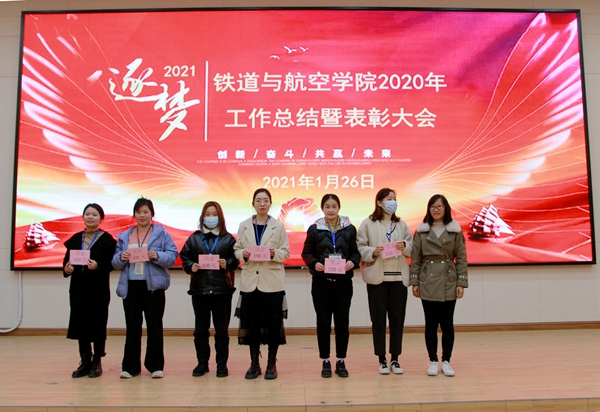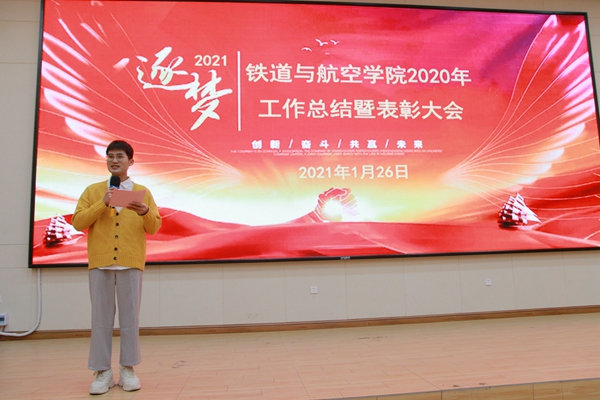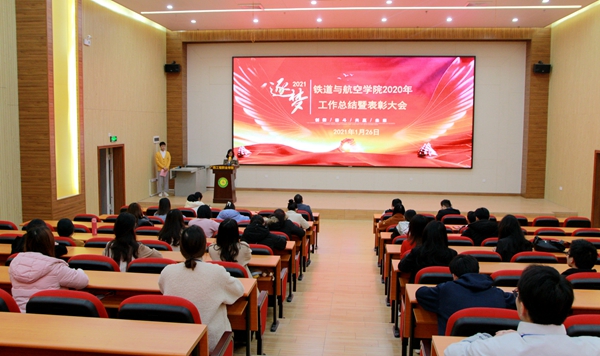 2021年1月26日下午,学校图文信息大楼报告厅欢声笑语,热闹非凡,铁道与航空学院2020年度工作总结大会在这里举行,大会总结过去一年的工作成绩,表彰贡献突出的先进个人,全体参会的教师还现场抽取年度幸运奖,提前感受热闹的年味。