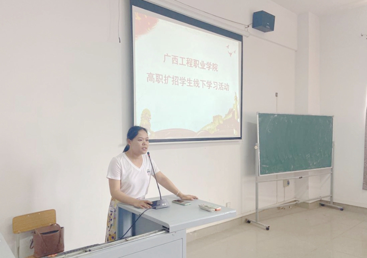黄秋霞助理首先代表学校向全体参加线下学习的同学们表示热烈的欢迎。她指出学校将抓住高职扩招发展机遇,主动迎接挑战,把高职扩招作为深化职业教育改革发展、提升教育教学质量的新动力。同时她对同学们提出了三点殷切希望与要求: