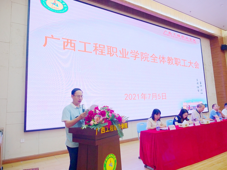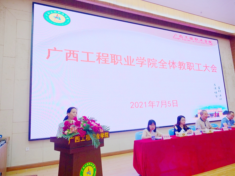 7月5日,beat365在图文信息大楼学术报告厅召开全体教职工会议,学校党委副书记、副校长胡细木,党委委员、副校长、宣传部部长彭高彬,副校长吴先夏、罗艳妮、黄德伟,校长助理黄秋霞出席大会。大会主要内容为传达学习习近平总书记在庆祝中国共产党成立100周年大会上重要讲话、深入学习贯彻党的教育方针动员教育、师德师风微党课学习、暑期安全教育等。罗艳妮副校长主持会议。全体教职工参加会议。